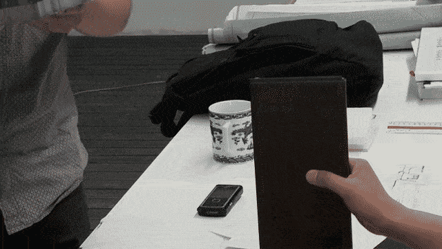 TYPING ON THE WINDY FILM SET